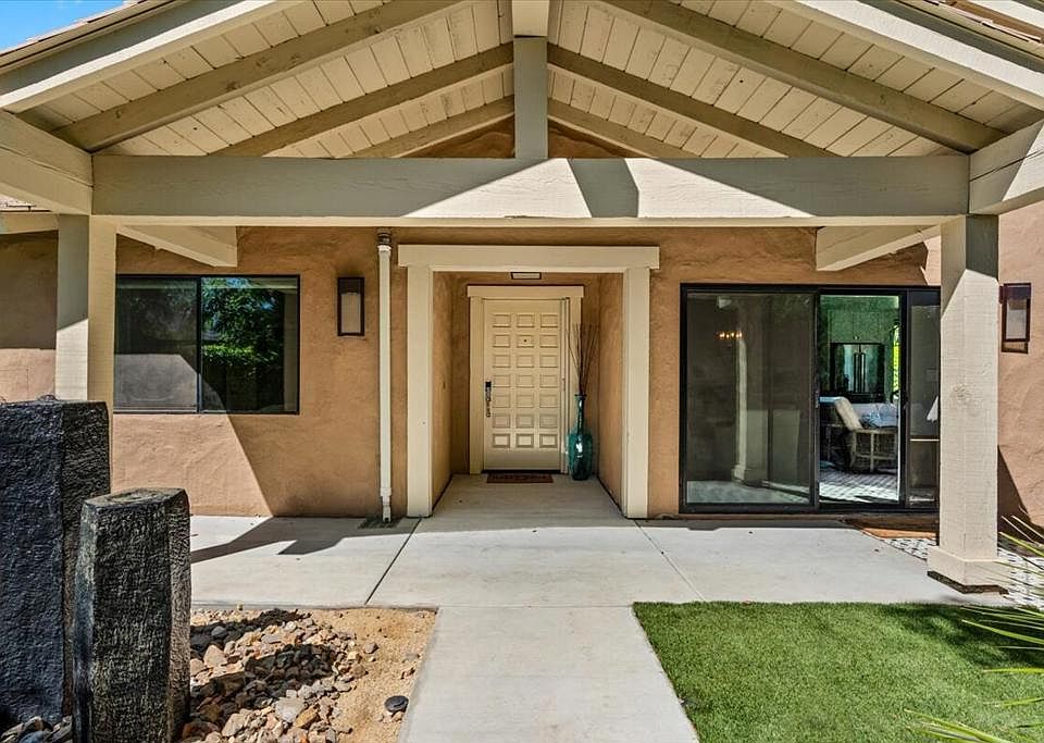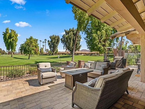 Welcome to this rare gem at 132 Castellana W in this highly sought-after community at Monterey CC in Palm Desert. Perfect for a primary, secondary, or investment property for STR. This corner lot home has been beautifully remodeled with a fresh CONTEMPORARY style and is one of the larger floorplans you'll find here. In addition to 3 ensuite bedrooms, you can enjoy an extra den space that is currently being used as an office adjacent to the bright and light great room! Your chef's kitchen comes equipped with KitchenAid appliances and a large kitchen island that makes it ideal for entertaining. What makes this home especially unique is its extra large sideyard that has also been recently professionally landscaped, inclusive of 2 serene water features. Enjoy stunning views of the golf course and mountains from your spacious back and side patios. Additional noteworthy elements include tankless water heater, 220V EV charging capability, and additional storage space in the attached 2-car garage. You're also only steps away from 1 of 37 community pools/spas. Monterey CC offers a clubhouse, fitness center, 27 holes of golf designed by Ted Robinson Jr., 13 tennis courts, 20 pickleball courts, 4 bocce ball courts, and a calendar of golf and social events. Schedule a private tour today and discover your dream desert lifestyle!