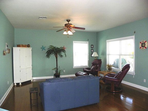 Immaculate home on a wide canal in Holiday Beach. Coastal colors, hardwood floors and big open area living room, dining room and kitchen. This house comes completely furnished. Pack your bags and move right in, so you can relax and enjoy the water view and the breeze!