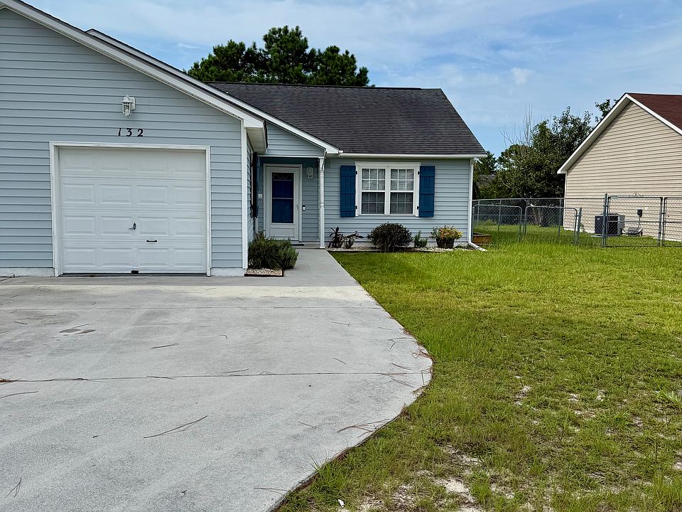Beautifully maintained 2 bed/ 2 bath home in Foxtrace Point. You will love the location as it is less than 10 miles to the beautiful waterfront town of Swansboro and only a very short drive to our gorgeous Emerald Isle beaches. Perfectly located just minutes from Camp Lejeune and Jacksonville where you will find shopping, dining and entertainment. Not only is the location perfect , but the property offers everything you will want in a home. When you pull up to this property you will immediately notice the curb appeal is very welcoming. This home offers a very open floor plan making it super convenient and extremely functional. The updated all stainless steel appliances and added ''coastal'' decor to make you feel at home in NC! Crown molding has been added to the cabinets for that touch of elegance.The living room is very spacious, but yet extremely cozy and the vaulted ceilings make the home feel warm and welcoming.You will love the beautiful sunroom and patio that allows you that peaceful feeling while sipping your coffee and watching the birds. It can be used as an office space, exercise room and so much more! The bedrooms and baths have all been upgraded and offer the perfect amount of space for all of your furnishings. You will love the double closet space that both bedrooms have as well. No more struggling to fit your clothing and all those shoes! Don't forget to notice the great outdoor space as well. The property has a large fenced in yard with a shed for your outdoor tools and a 1 car garage. This is a must see property that you will want to see! Apply today and make this your new home! Renter is responsible for utilities. No smoking.