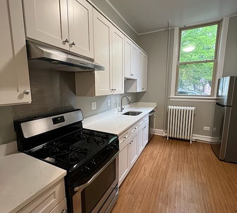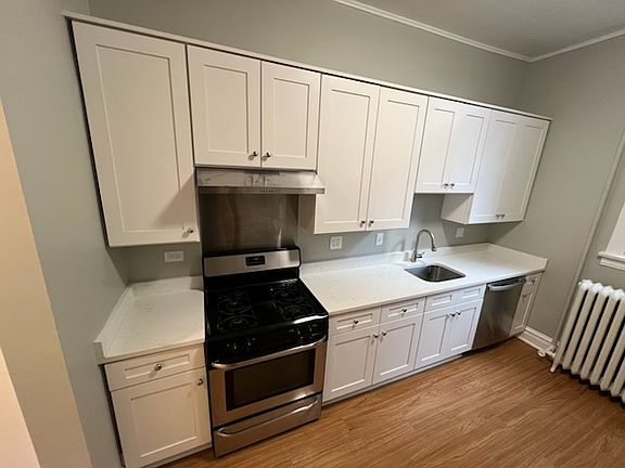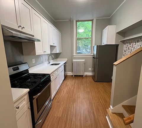 2 bedroom 1 bathroom apartment offering the perfect blend of charm and modern convenience. Enjoy an open floor plan with hardwood floors throughout, a brand new bathroom, and an updated kitchen featuring white cabinetry, quartz countertops, stainless steel appliances, and a cozy breakfast nook. Stairs up lead to the spacious living and dining rooms with plenty of natural light. Onsite laundry. No smoking building. 1 exterior parking space included and 1 additional may be available. Situated in a prime Forest Park location, you'll be steps from Aldi, downtown Forest Park, local coffee shops, and a park. Conveniently close to downtown Oak Park, public transportation, schools, Whole Foods, Trader Joe's, and Target everything you need is right at your doorstep!