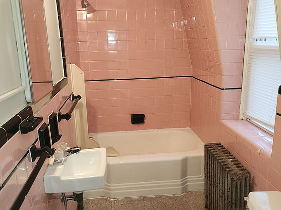 Original moldingsHigh ceilingsOriginal subway tileTiled bathEat in kitchen
