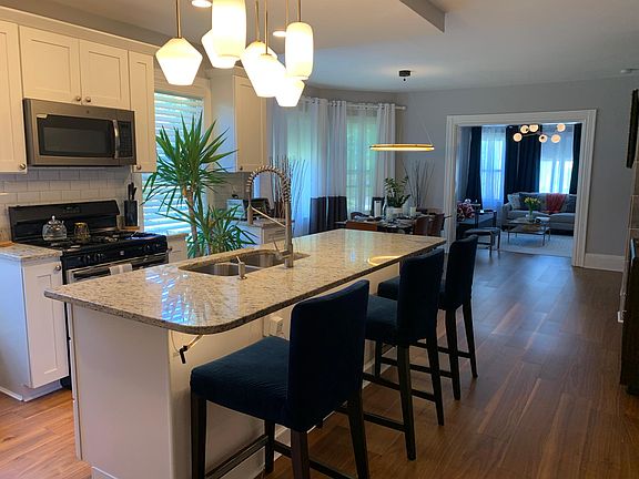 Newly renovated kitchen with high-end stainless steel appliances, including gas oven range, refrigerator, dishwasher and microwave, granite countertops, pantry closet, new cabinets and island.