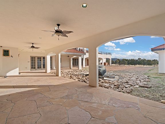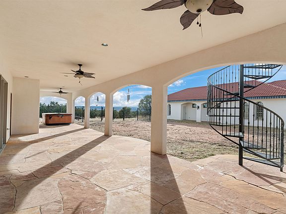 On 40 acres fully fenced with heavy duty metal fencing, the property is a 6,237sf main house consisting of 3 bedrooms, 6 bathrooms (4 full and 2 1/2), study, office, 'craft room', recreation room, and a 'meditation room'. There are 11 attached direct entry garage spaces. Next is a doublewide manufactured home with 3 bedrooms and 2 full bathrooms. And finally a casita which has one bedroom. The property is served by 2 wells, 2 septic systems, propane, and 2 backup generators. Multiple storage units, barns, pastures, and paddocks for horses and other animals. Approximately 6,731sf total in outbuildings. 40 minutes to Santa Fe, 20 minutes to Las Vegas.