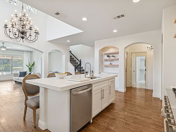 Up to $4,000 CREDIT toward buyer’s closing costs with preferred lender! Impeccably renovated in 2021, this stunning open concept home with 4 bedrooms and 3.5 bathrooms perfectly blends luxury and functionality with high end upgrades and designer touches. At the heart of the home is the chef’s kitchen, featuring quartz countertops, white cabinetry, a commercial-grade double gas range, a custom vent hood, stainless steel appliances, and a pot filler. The custom walk-in pantry offers exceptional storage and use as an appliance hutch. The custom bar area—complete with built-in cabinetry, a beverage cooler, and an ice maker—takes entertaining to the next level. Sellers can remove the bar upon request if preferred for office use. The first-floor primary suite is a serene retreat with peaceful views of the backyard oasis. The spa-inspired ensuite bathroom showcases a freestanding tub, frameless glass shower, herringbone tile, and a double vanity with upgraded lighting for a luxurious touch. Upstairs, you’ll find a versatile game room, a second primary suite ideal for guests or multi-generational living, two additional bedrooms-one with access to the balcony, and another full bath. Step outside to the backyard paradise with an extended covered patio with retractable shades, an outdoor kitchen, a sparkling pool, soothing water feature, and relaxing hot tub—all overlooking a tranquil greenbelt. The greenbelt connects to scenic trails and nearby parks, offering endless ways to enjoy the outdoors. Additional highlights include a covered front porch, a picturesque upstairs balcony, an oversized driveway, a whole-house water filtration system and a washer and dryer included with the home. Ideally located with quick access to shopping, dining, entertainment, and top-rated schools—including the highly coveted Walnut Grove High School. Meticulously maintained and move-in ready, this home delivers the perfect blend of style, functionality, and the lifestyle you’ve been dreaming of!