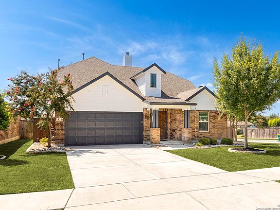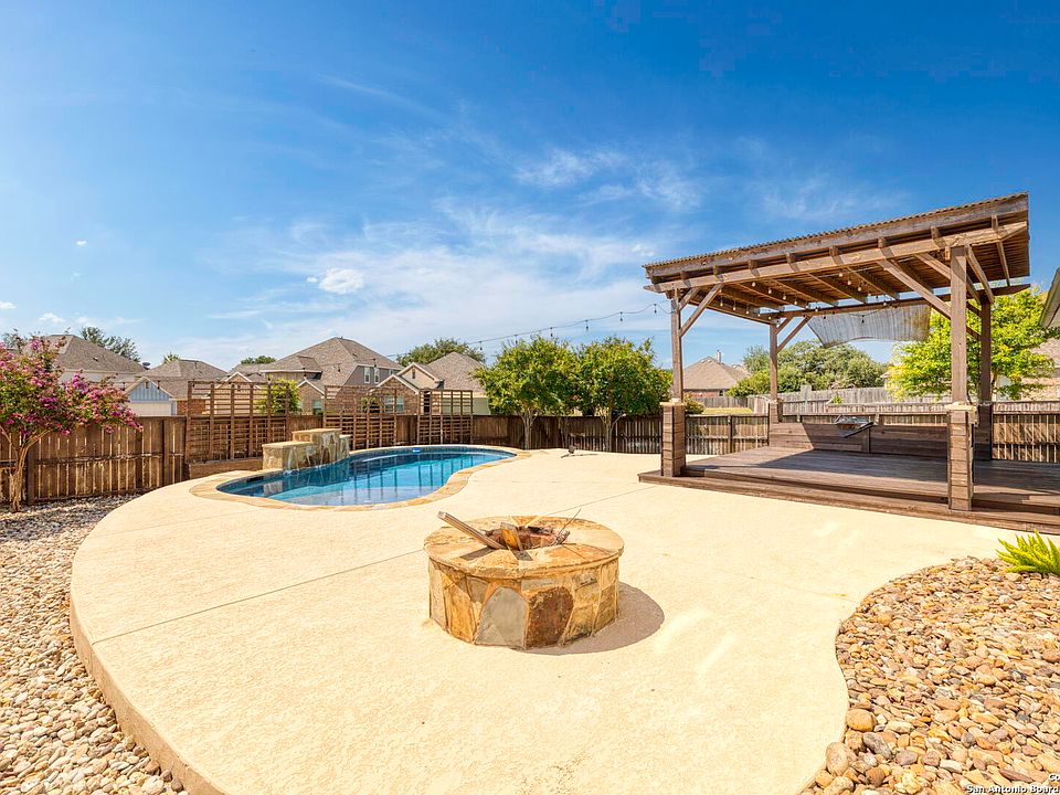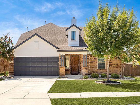 Welcome to Champion Heights! This charming home boasts 4 bedrooms, 2.5 bathrooms and is perfect for entertaining and relaxing! As soon as you walk in, you're greeted by a formal dining room that flows to the open concept living area. The upgraded wood floors throughout the downstairs adds elegance and warmth to the space. The kitchen features a spacious island, granite countertops, stainless steel appliances and a gas stovetop. The spacious owners retreat is the perfect place to unwind after a long day. It features an ensuite bath and a large walk-in closet, providing ample storage space for all of your belongings. Upstairs, you'll find a gameroom, three additional bedrooms and a full bathroom. Step outside to enjoy the covered patio and pergola, designed for outdoor entertaining. Take a dip into the in-ground pool or get cozy around the fire-pit. You'll never want to leave your backyard oasis that you can enjoy year round. Backing up to a green space with no rear neighbors gives plenty of privacy. Centrally located with easy access to downtown Boerne and the highly rated Boerne ISD. Whether you're looking for a peaceful retreat or a place to entertain, this Hill Country charmer has everything you need to feel right at home.