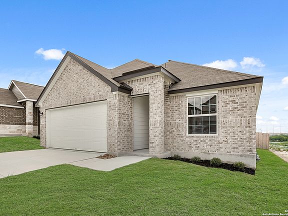 Love where you live in Hunters Ranch in San Antonio, TX! The Ravenna floor plan is a charming 1-story home with 4 bedrooms, 3 baths, and 2.5-car garage. This home has it all, including vinyl plank flooring throughout the entire home! The gourmet kitchen is sure to please with 42" cabinetry, granite countertops, and stainless-steel appliances. Retreat to the Owner's Suite featuring granite countertops, an oversized shower, and walk-in closet. Enjoy the great outdoors with a sprinkler system and a covered patio! Don't miss your opportunity to call Hunters Ranch home, schedule a visit today!