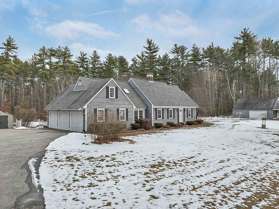 Welcome to this spacious and beautifully expanded Cape offering 3,722 sq ft of versatile living space set on 2.33 private acres. This thoughtfully designed home features 4+ bedrooms, including a first-floor primary en suite, and a flexible floorplan ideal for a variety of living arrangements. The main level boasts hardwood, tile, and carpeted flooring, a large kitchen with granite countertops, and an impressive pantry. Enjoy year-round comfort in the inviting four-season sunroom, or relax in the outdoor hot tub overlooking the private grounds. Convenience shines with first-floor laundry and abundant storage throughout. A standout feature of this property is the expanded garage capacity, a 3+ car attached garage plus an additional detached garage with finished space above, its own driveway, and its own septic system. This setup creates excellent potential for a separate-entry ADU, home office, studio, or guest suite (buyer to perform due diligence). Set on a serene, wooded lot that offers both privacy and space, this property provides an exceptional combination of comfort, functionality, and opportunity.
