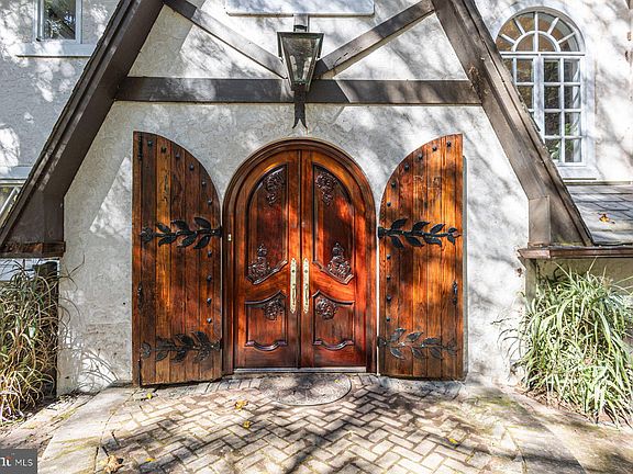 Scenic tinicum creekTudor-style residenceCustom-crafted staircaseFrench doors and windowsTimeless architectureRefined finishesLong winding drive