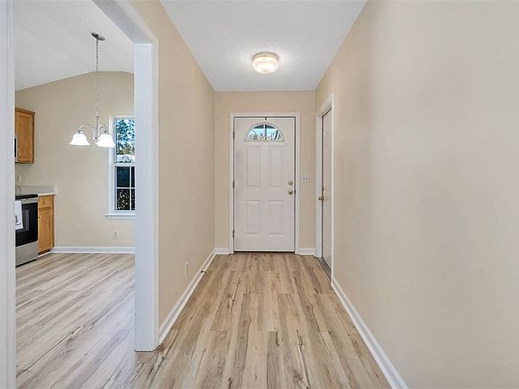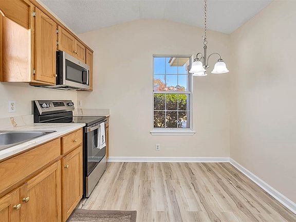 Welcome to 132 Easy St in the desirable Cates Bounty community, where easy, carefree living truly meets modern comfort. This freshly renovated 3 bedroom, 2 bathroom home has been updated from top to bottom, giving you the freedom to simply move in and start enjoying life. With NO HOA and not located in a flood zone, this property offers both peace of mind and everyday convenience. Step inside to a bright, open floor plan featuring brand-new flooring, fresh interior paint, and vaulted ceilings that make the home feel spacious and inviting. The living room includes a cozy fireplace, perfect for relaxing evenings or effortless entertaining. The beautifully updated kitchen is complete with solid-surface countertops, new stainless-steel appliances, and warm cabinetry—all designed for low-maintenance living. An adjacent dining area offers a comfortable space to gather for meals overlooking the backyard. All three bedrooms are generously sized with updated flooring and fresh finishes throughout. Both bathrooms are clean, modern, and move-in ready. Outside, enjoy a partially fenced yard, an attached two-car garage, and a low-maintenance exterior—perfect for those who want a home that feels like a retreat without a long to-do list. If you’re searching for a property that offers comfort, convenience, and a worry-free lifestyle, this is the one. Everything has already been done for you—just unpack, relax, and start enjoying the simplicity of Easy Street.