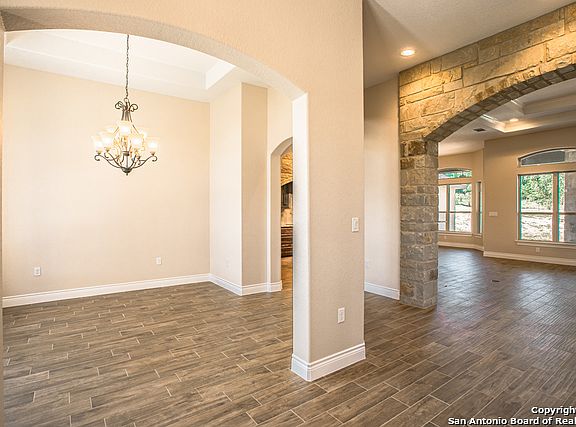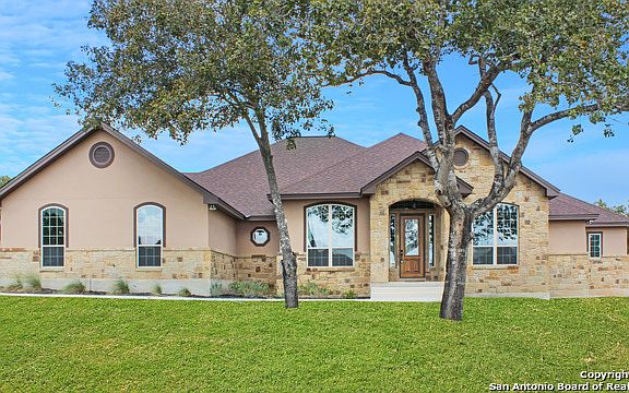 Stunning Hill Country chic style home now available in Eden Crossing! Custom features throughout this brand new home, including the grand rock archway entrance into the great room. Modern open floor plan featuring a chef's style kitchen with island prep station with sink, double ovens, and grand rock surround! Split floor plan with over sized bedrooms and a master retreat that literally has everything! Outdoor entertaining with fireplace on huge back patio. LVISD, this is THE dream home, don't miss it!