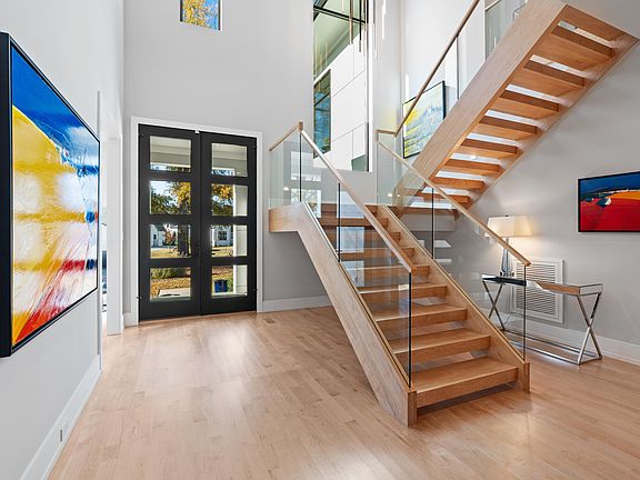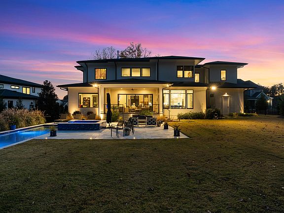 Modern design meets everyday livability in this contemporary Loyd Builders home in Colvard Farms. Built in 2020, the layout is intentional, clean, and centered around light, space, and function. A 25-yard lap pool, hot tub, and dedicated pool bath anchor the fenced backyard, and the phantom-screened porch with a linear fireplace creates an effortless extension of the interior. Inside, the kitchen is outfitted with Wolf appliances, Sub-Zero refrigeration, ASKO dishwasher, and quartz surfaces throughout. A private scullery adds true working-kitchen convenience with its own dishwasher, sink, microwave, and refrigerator/freezer. A custom wine cellar completes the setup. The main-level primary suite includes a soaking tub, large walk-in shower, and double vanity. Additional spaces include an exercise room and an upstairs bonus room with a wet bar, wine cooler, and beverage refrigerator. A full-house Generac generator offers peace of mind. Colvard Farms offers a full suite of amenities—clubhouse, fitness center, pool, playground, jogging path, tennis courts, and walking trails—all just minutes from Durham and RTP. Modern lines, smart spaces, and community conveniences come together in a home designed for real living.
