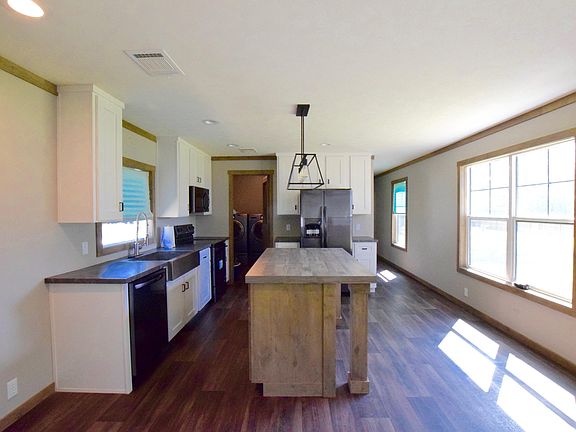 LIKE NEW beautiful 2019 Clayton Home on .49 acre lot, with beautiful oak trees that have been trimmed. This energy smart home has a split, open floor plan, with a farm house design. This home features a spacious kitchen, pantry, three bedrooms, two baths, new kitchen appliances, and front and back steps. The bedrooms are separated by the living area and the large master suite offers dual sinks, a large soaker tub, and separate shower. This .49acre lot has a fully enclosed new 6ft wood fence, and is in flood zone X (doesnt require flood insurance). There is plenty of parking for large trucks, trailers, or heavy equipment. This lot also allows for an extra mobile home to be added, and would make a good investment property.