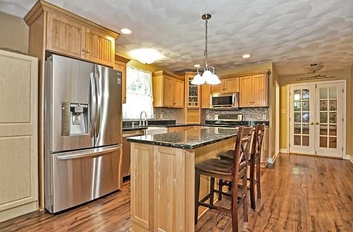 Amazing Custom Home Built on a Private Setting with Potential for In-law Set up. This Property Offers an Open Floor Plan with an Updated Kitchen w/Granite Counters & Farmers Sink which is open to the Living Room with a Fire Place & Pellet Stove for Supplemental Heat and Access to the Back Deck Overlooking a Tree-lined Yard. Over Garage is an Enormous Great Room/Family Room with Pellet Stove, Surround Sound & Bar Area. Large Dining Room w/Elegant Moldings and Office or First Floor Bedroom. The Second Floor Boasts a Large Master with Make-up Area & Master Bath with Jacuzzi & Dual Head Shower, two other Good-sized Bedrooms all with Ceiling Fans & Full Bath. The Lower Level could be used as an in-law with a Full Bath, Kitchen, Living Room & Bedroom/Office. Walk-out to a Stone Patio with Views of Abutting Woods and Access to the Carport. Set Back off the Street, this Private Retreat is still is a Good Commuter Location and near Plenty of Shopping.