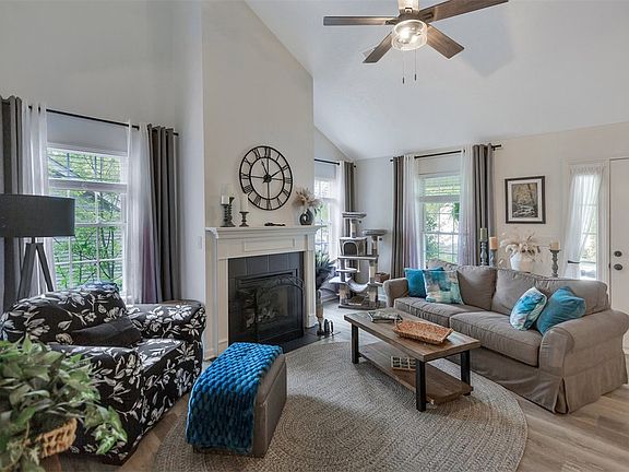 - Ceiling Fan(s), Cathedral Ceiling(s), Dual Sinks, Fireplace, Granite Counters, Garden Tub/Roman Tub, Bath in Primary Bedroom, Main Level Primary, Smooth Ceilings, Tub Shower, Walk-In Closet(s)