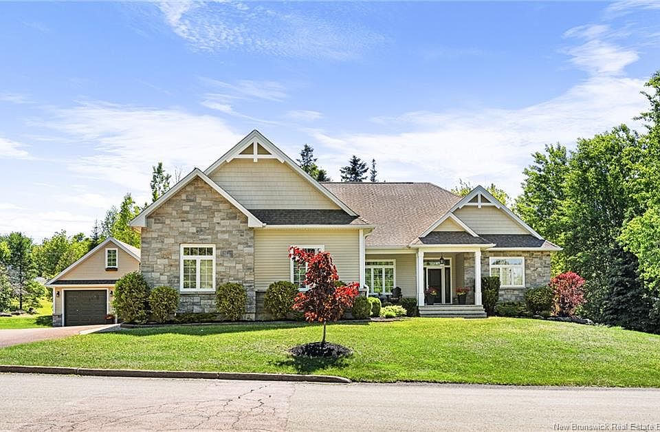 STUNNING EXECUTIVE HOME WITH LOTS OF UPGRADED FEATURES INCLUDING DOUBLE ATTACHED GARAGE AND DETACHED GARAGE IN MONCTON EAST! Located on a quiet street and within easy access to major highways, this home offers LOTS OF LIVING SPACE AND HIGH END FINISHES. The main floor features an OPEN CONCEPT DESIGN offering a CUSTOM KITCHEN WITH WALK-IN PANTRY and GRANITE COUNTERTOPS, a well appointed living room highlighted by vaulted ceilings and a propane fireplace, an office, and a recently added three season sunroom. Down the hall, you will find the PRIMARY BEDROOM offering his and hers walk-in closet and a SPACIOUS LUXURIOUS 5 PC ENSUITE. An additional bedroom, a full bathroom, and a bedroom complete this level. The FULLY FINISHED LOWER LEVEL WALKOUT adds additional living space with a large family room, a media room with a built-in bar, a gym, a full bathroom, two additional bedrooms, and a storage room. The lower level also includes a pellet stove for an alternate heat source. This home features the incredible bonus of in-floor heating throughout both floors, the attached garage, and the detached garage. The exterior of this home includes professionally manicured landscaping, a detached garage with a back room HOT TUB, and a loft for storage, and MUCH MORE. Call your REALTOR for more details!
