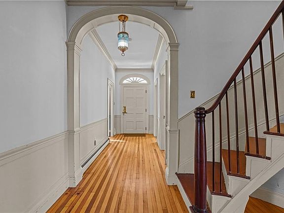 Located in Bristol's sought after historic district and directly on the famous 4th of July parade route, this quintessential 1811 Federal home is now available for the first time in 25 years! Built for Capt. George Washington Devol and his wife Mary Bosworth, the home is attributed to renowned architect Russell Warren and features one of his striking signature floating staircases (similar to Linden Place and Warren's own 1800's home on State St). That staircase is just one of the many gorgeous details found throughout including door, window, and crown moldings, shutters, built-ins, and 7(!) original mantels. 132 High has room for everyone thanks to a gracious center-hall floor plan, 5+ bedrooms and 3.5 baths, providing options for first floor or second floor primary suites plus a potential "in-law"/au-pair suite. The updated spacious eat-in kitchen and adjoining dining room are great for casual or more formal entertaining. Storage abounds in the full basement and 1 car garage. And with its corner location and numerous windows the house's spacious rooms are flooded with sunshine. Historic Bristol is a classic New England harbor town with a picture postcard downtown, well regarded restaurants, shops, museums, not to mention its famous 4th of July parade - the oldest in the country. Nearby Warren brings more eclectic restaurants and shops. Newport & Providence are each just 30 minutes away, Boston & Cape Cod just over an hour. Don't let this rare opportunity pass you by!