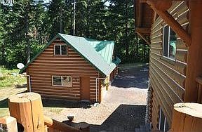 Magnificent 3112 sq. ft. spruce log home in Home Valley, WA. just up the road from famous Wind River fishing & hot springs. Fabulous views of the Columbia River and Wind Mountain. Two large river rock fireplaces one with new insert, custom cabinets with corian counter-tops in kitchen in bathroom, tile shower, glazed metal roof, stainless steel cable railing around deck. Home also has security system & fire alarm system.