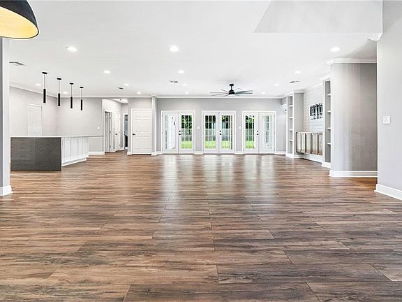 Presenting a distinguished residence in The Myrtles, this property features five bedrooms, three full baths, one half bath, a dedicated office, an extended driveway, two-car garage, spacious back porch, and an expansive backyard located in Laplace. The home is appointed with wood-style tile flooring throughout most rooms and no carpet for easy maintenance. The recently renovated kitchen includes a very large island with seating space for several people, a farmhouse sink, sophisticated tile backsplash, quartz countertops, dishwasher, microwave, range oven, and pantry. The living room is accented by a new entertainment center, ample natural light, and generous square footage. A private office is also available.