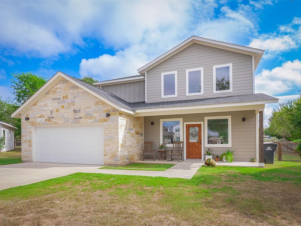 Discover refined living in this beautifully designed 4-bedroom, 2.5-bath residence offering 1,894 square feet of elegant interiors on an expansive 0.44-acre cul-de-sac lot. A charming covered front porch sets the tone, welcoming you into a home filled with natural light and a sophisticated open-concept design. The main level showcases luxury vinyl plank flooring and a seamless flow between living and dining spaces. At the heart of the home, the gourmet kitchen impresses with granite countertops, a subway tile backsplash, a center island, and abundant natural light—perfect for both everyday living and entertaining. The main-level primary suite offers a private retreat, featuring a spa-inspired bath with dual vanities, granite counters, and an extended walk-in shower. Upstairs, two secondary bedrooms provide comfort and style, sharing a full bath with granite finishes and a shower/tub combination. Outdoors, the covered patio opens to a vast, fenced backyard—an ideal canvas for entertaining, relaxation, or creating a luxury outdoor oasis.