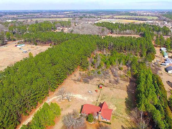 Tons of space with acreage...Spacious all brick home features 4 or 5 bedrooms, 3 downstairs, additional bedroom right off of office, upstairs bedroom, sewing room & bonus rooms, 2.5 baths, large living room w/wood burning fireplace, fenced in back yard, all located on over 6 acres outside of the city limits. Home sits off of the road w/tons of privacy.