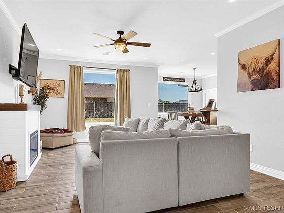 This home offers the convenience of a 3-car garage, providing ample storage and parking options. A recent addition to the property is the brand new inground storm cellar, ensuring safety during inclement weather. For those who love outdoor living, the covered back patio offers a perfect spot to relax and entertain, all while being embraced by the privacy of a well-maintained fence.