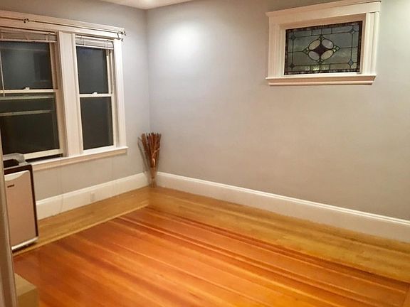 A commuter's dream. Perfect location with 2 dedicated off-street parking spots for this large 8 room /3-4 bedroom / 2 bath apartment. Walk to Wellington Station, Station Landing, Assembly Square, Stop n' Shop and many more amenities! This unit has gleaming hardwood floors throughout. Large open rooms, lots of original woodwork, stained glass windows, a gorgeous hutch and energy efficient tilt-in windows. Extra room that can serve as a bedroom or office. Private outdoor deck. Enjoy a fully-applianced eat-in-kitchen with pantry and 2 beautiful full baths (one with jacuzzi tub) as some of the great features of this unit. Tons of storage available and laundry in basement. Well maintained two-family was owner-occupied home with separate entrances. Available May 1. No broker fees and current tenant is willing to leave behind some furnishings. Extra fee for pets.