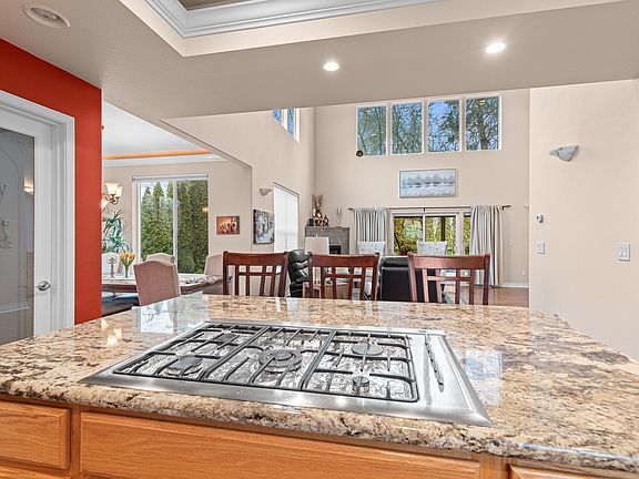Cul-de-sac location among other beautiful homes! Excellent curb appeal is just the beginning! Upgraded features and amenities include: premium vinyl flooring throughout the downstairs, granite counters, kitchen island w/ 5 burner cook-top w/ downdraft, breakfast bar, large pantry and laundry room w/ utility sink. Kitchen, dining and primary bedroom all feature dimmable uplighting! Soaring ceilings in the great room w/ ceiling fan and corner gas fireplace. Slider opens to a spacious covered deck w/ composite decking. Beautiful landscaping w a babbling creek included! And, did we mention, there's an elevator for your convenience! Plus, much more!!!!