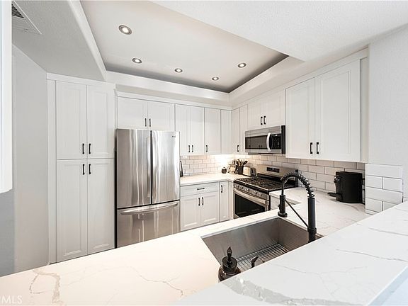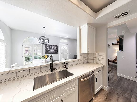 Beautifully upgraded 2-bedroom, 2.5-bath townhome in the highly sought-after Montana Del Lago community. This home features two primary bedrooms with vaulted ceilings, including one with an upgraded shower and a stylish barn door. The remodeled kitchen includes new cabinets, quartz countertops, a stylish backsplash, a barn sink, and newer stainless steel appliances. The living room is highlighted by a cozy fireplace, perfect for unwinding. Other upgrades include luxury vinyl flooring with upgraded baseboards, recessed lighting, plantation shutters, window blinds, new faucets, a screened front door, a new AC condenser, and new toilets. Enjoy the private patio overlooking the courtyard, an attached 2-car garage, and the privacy of no neighbors above or below. Conveniently located near the Rancho Santa Margarita lake, beach club, community pool, spa, restaurants, and shopping.