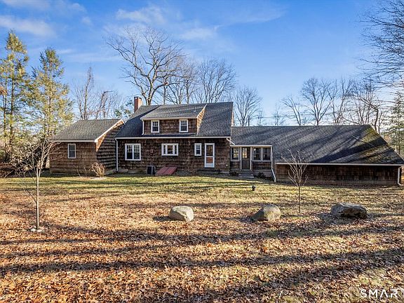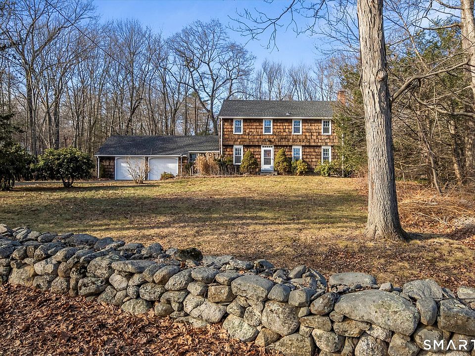 Classic New England charm meets timeless quality in this shingle-style Saltbox Colonial, privately set on over two scenic acres along a picturesque country road bordered by a gracious stone wall. Custom built by the original owner, this beautifully maintained home offers exceptional flexibility with multi-generational living options, including a first or second-floor primary bedroom. Warm wood floors flow throughout the home, enhancing the inviting formal living and dining rooms that connect seamlessly-perfect for festive gatherings and memorable celebrations. The updated kitchen will delight cooks with quartz countertops, a stylish tile backsplash, updated appliances, generous pantry storage, and easy access to a lovely enclosed porch, ideal for warm-weather relaxation. Thoughtful details abound, including rich moldings, built-ins, Nantucket-style windows, central air conditioning, and an abundance of closet space. An oversized two-car garage adds convenience and functionality as well as a first floor laundry and mud room. Ideally located just minutes from Route 44, schools, and shopping, this exceptional property offers the perfect blend of privacy, craftsmanship, and location. Make this your forever home. Seller prefers GHAR contract, no escalation clauses, as-is rider.