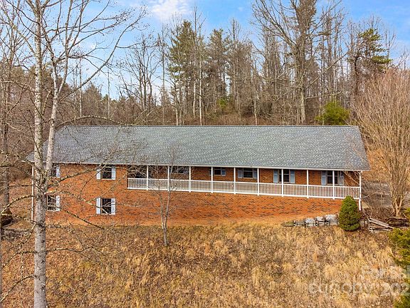This spacious, full brick ranch on 7+ acres with views is a blank canvas for buyers seeking to add their personal touch. Built in 2001, this home offers an open concept with desirable split bedroom floorplan. Each bedroom has dedicated ensuite bathroom, along with a half bath on each floor. Vaulted ceilings and hardwood floors add charm & character to the main floor. Gas log fireplace in the living room and wood burning fireplace in the basement. Bonus room perfect for home office or hobbies. Partially finished basement with exterior access offers tons of potential to extend your living area or add more square footage. Extra long front porch and rear patio invite outdoor enjoyment and entertaining. Two car garage with access to main floor. Accessible location just 3 miles to downtown Marshall, 5 mins to Ingles, 20 mins to both Weaverville & Hot Springs, 30 mins to Asheville -- so you'll find lots to do nearby. Go & Show!