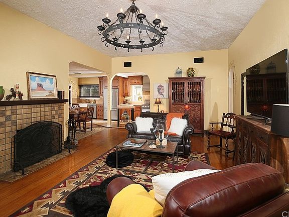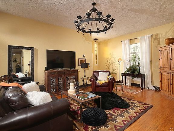 Charming Spanish style home located in North Monrovia. Features include a living room appointed with Batchelder fireplace, kitchen with built-in appliances, granite counters and custom cabinets, a dining area with French doors opening to the deck, tandem garage and a grassy yard with spa. Other amenities include hardwood floors, laundry room, central air and forced air heating, freshly painted interior and exterior.