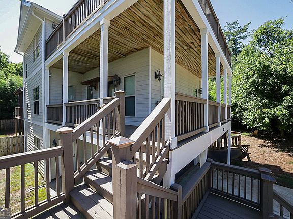 What a spectacular slice of Athens paradise. Situated in the heart of DAWG country and boasting unsurpassed convenience to Downtown Athens, the Classic Center, Dooley Field at Sanford Stadium and UGA-this showcase craftsman is a true CLASSIC! Upgraded with standout appointments and move-in ready condition, this "Charleston-styled" tri-level boasts a dynamic plan that definitely stands out. As you approach, the verdant, lush lawn accented by hard-scape draws you in. Greeted with double piazza decks, outdoor living options are definitely not limited. Welcomed by the main floor you're immediately taken back by this homes conversation piece, the 3rd floor balcony overlooking the great room. The palatial ceilings adds immense charm, and allows natural light to engulf the space. Quite spacious, the great room is the perfect gathering spot, and boasts a fireplace as well offers the quintessential entertaining layout overlooking the kitchen. Well equipped and stacked with upgrades, the gourmet kitchen features it all-Custom cabinets accented by a tile backsplash, butcher block counters offer ample space for meal prep, even more space is provided with the granite-topped island, not 1 but 2 pantry options, and was recently upgraded with a completed stainless appliance package. To ensure ample seating for all, the kitchen offers an extended, raised breakfast bar and an oversized sunlit dining room that could easily seat 8+. The main floor is complete with a guest bedroom, perfectly appointed full bath, and the laundry room for added convenience. Ascend the stairs to find an additional all-inclusive bedroom suite with private full bath, as well as the owner's suite. No stone left unturned, the primary is an extraordinary retreat enhanced with a double tray ceiling, spacious closet with shelving, ensuite bath and private access to the 3rd floor balcony with extended views of Downtown Athens. The primary lavatory continues to inspire with a dual-sink vanity, large tiled shower, and Whirlpool tub encouraging relaxation. Where's the upper level balcony you may ask...through French doors this owner's retreat gives way to 360' catwalk balcony with stunning views. It's truly a unique experience and would make the perfect library. Need even more room to expand? The lower level provides an additional bedroom and full bath with private exterior access. Although the wrap-around decks are glorious, you may prefer a more private setting, and the rear screened porch provides the perfect spot for year-round enjoyment. An open-air deck extends off the porch creating the perfect spot for grilling out. Adding to this total package is the fenced rear and side yard perfect for your fur babies, plus an additional storage building tucked away under the rear stairs. Providing an extra sense of security, both HVAC systems as well as the water heater were updated within the last year. Superior Convenience, Sought-after Location, and Upgraded Features combine to create the cool vibe that is N. Poplar Street!!