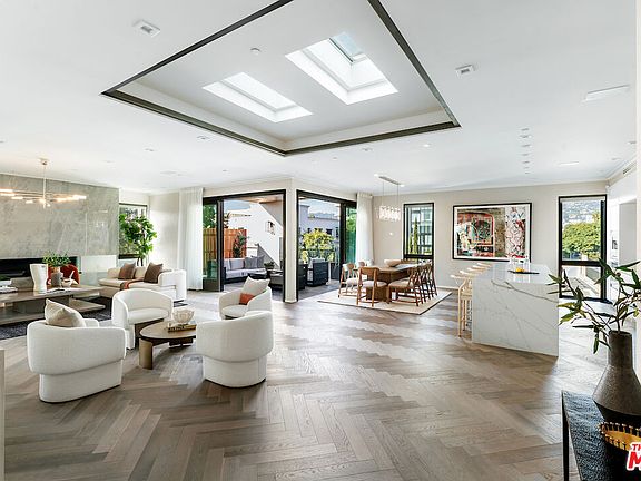 Rare 3-bedroom luxurious penthouse in a new contemporary 4-story condominium, nestled in one of Los Angeles' most coveted neighborhoods. This exquisite residence showcases meticulous craftsmanship and premium finishes throughout. The interior boasts French oak herringbone floors, a full chef's kitchen equipped with Miele appliances, Calacatta Blanco countertops, and oversized waterfall islands. Italian-designed cabinets with soft-close drawers elevate the space, blending beauty and functionality. The master suite is a serene retreat featuring a spa-inspired bath with dual sinks, a custom frameless shower, and a soaking tub, alongside a spacious walk-in closet. Each of the additional bedrooms includes ensuite baths, all outfitted with custom leather-wrapped door handles. Thoughtful touches like Lutron dimmable light switches, a Nest-compatible smart thermostat, and custom 42" wide front entry doors add modern convenience and sophistication. The expansive outdoor patio with automatic shades offers captivating views of the city and the iconic Hollywood Sign, creating the perfect setting for relaxation or entertaining. The penthouse includes two designated parking spots in the secure garage, complete with electrical chargers for E-cars. The building also offers three additional guest parking spots for visitors available for 48 hours for overnight guests. Perfectly located just blocks from Beverly Hills shopping, dining, and entertainment, this one-of-a-kind residence redefines modern urban luxury living.