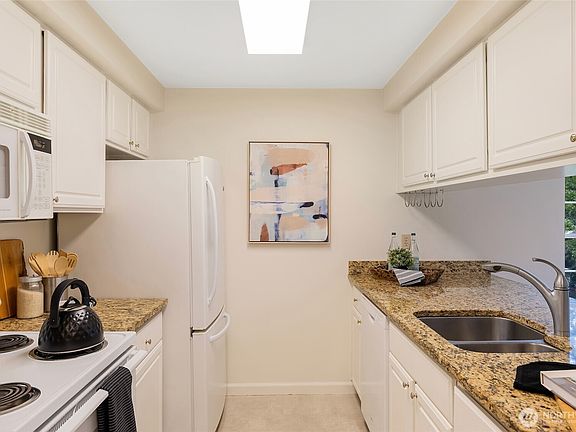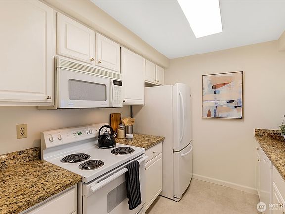 Welcome to Harrison Court Condos—beautifully maintained & perfectly situated between Maple Leaf & Northgate! Just minutes to the light rail, Kraken Iceplex, shopping & dining. Set in a secure, pet-friendly building offering comfort & easy commuting, this west & north facing corner unit is flooded w/ natural light & features a smart, open layout w/ spacious living room, wood-burning fireplace, & private balcony w/ storage. Kitchen features granite counters + ample cabinet & counter space. The generous primary bed boasts a walk-in closet & full bath. The 2nd bed is perfect for guests or WFH, while the add’l full bath adds everyday convenience. Full-size W/D in-unit & 2 dedicated garage parking spaces included. Inspection & HOA docs available.