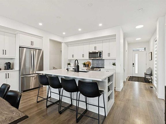 Welcome to this beautifully UPGRADED & THOUGHTFULLY DESIGNED two-storey home in the sought-after community of Precedence! Blending style, comfort, and functionality, this home offers a thoughtfully planned layout with stunning finishes throughout. The OPEN-CONCEPT main floor showcases a bright WHITE KITCHEN accented with sleek BLACK HARDWARE, QUARTZ COUNTERTOPS, TONS OF COUNTER SPACE and a large U-SHAPED ISLAND with a BREAKFAST BAR. With a WALK-IN PANTRY, UPGRADED TILE BACKSPLASH, INDUCTION COOKTOP, and BAR/WINE FRIDGE, this kitchen is both a chef’s dream and an entertainer’s delight. The spacious living room is filled with LOTS OF NATURAL LIGHT from the TRIPLE-PANE WINDOWS and soaring ceilings, creating an inviting atmosphere. Step onto the east-facing deck where the sun rises to enjoy a hot cup of coffee or the opportunity to BBQ as its roughed in for a gas line. This home is the perfect place for hosting friends or enjoying your morning coffee while taking in the sunrise. Upstairs, the primary retreat is a true highlight, featuring expansive windows, a spa-inspired 5-piece ensuite with a SOAKER TUB, STAND-ALONE SHOWER, and DUAL VANITY, plus a WALK-THROUGH CLOSET with direct access to the laundry room. Two additional bedrooms, a 4-piece bath, and a central bonus room complete the upper level. The unfinished, walkout basement with bathroom rough-in provides endless opportunities to create your dream space. Outside, enjoy the AGGREGATE PATIO and beautifully landscaped yard. Additional features include a double attached garage with built-in shelving and SOLAR PANELS for enhanced energy efficiency. This home checks all the boxes for modern living in a family-friendly community. Don’t miss your chance—book your showing today!