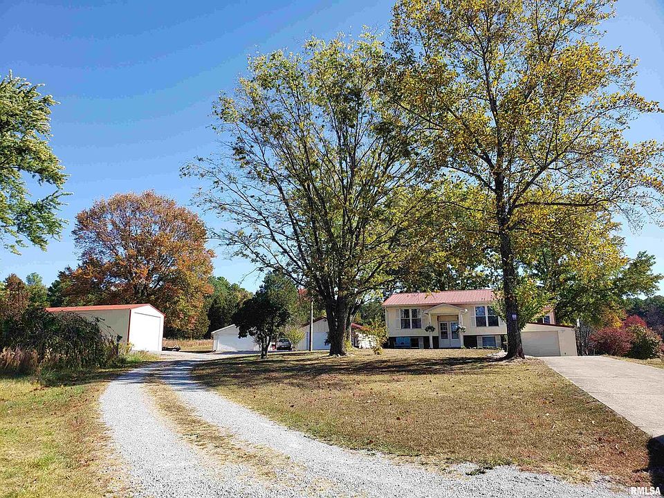 GREAT LOCATION! This lovely home sits centrally between Harrisburg & Paducah KY & is in between Hayes Canyon & Bear Branch Horse Camps. It is close to the horse trails near Eddyville, IL, & is also close to many recreational parks and activities, including the Ohio River. The back edge also borders the Shawnee National Forest, which is a hunter's delight! HUGE HOUSE! So many amenities! 5 bedrooms, 2 1/2 baths, finished full walk-out basement, large eat-in kitchen plus a separate dining area, living, family & great rooms, a craft room, laundry room, sun room office area, mud room, music room plus a 1 car attached garage. Enjoy a large screened in porch at the back of the house. 8.6 ACRES IN BEAUTIFUL POPE COUNTY! The outside features 2 detached garages, an RV barn & RV electric hook-up, a tack barn with 2 lean-to's, & mature shade trees. All this plus fiber internet access & an all weather paved road. Property is fenced & cross fenced to 4 pastures. Fencing is negotiable. Call today!