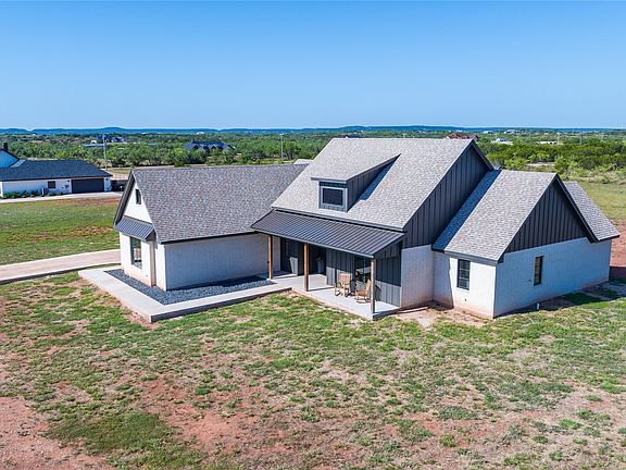 Here's your chance to own a luxurious new build by the unsurpassed luxury home building enterprise, Nelson Construction. Situated on almost 2 acres in highly desirable Jim Ned ISD. LOWER PROPERTY TAXES, NO HOA's & NOT in flood zone. Great views of the hills & beautiful tree-lined scenery. This one is ready for you to create your very own oasis. You get all of the perks of living outside city limits, while still being just minutes from Abilene city limits. This home is pure Luxe! Here's a list of some of the professionally designed, luxe features to fall in love with: Large custom windows throughout, high-end commercial-grade gas range accompanied by high-end SS appliances in kitchen, white quartz counters with gray veining, 5x10 kitchen island, 12ft vaulted ceilings in main areas, designer lighting & fixtures throughout, soaring 20ft cathedral ceiling in master bedroom with exposed center beam, oversized 22x28 two-car garage, solid 8ft interior doors throughout, gas fireplace insert, mudroom with bench & lockers, Texas sized walk-in pantry & a layout worthy of envy. Main living areas are open concept with a split bedroom floorplan. The 4th bedroom could also make a great 2nd living area, den, in-law suite, home office, exercise room, media room or whatever you desire. The master suite is sensational - a true must see, with its spa-like ensuite bath boasting a large walk-in shower with dual showerheads including rainfall showerhead from ceiling, large soaking tub, dual sinks & enormous walk-in closet that anchors it all in. Lastly, for those that love being outdoors, you'll be impressed by the large, covered patio in back & the huge, covered porch in front. No more lots to build on out here - last chance to own in this highly desirable subdivision...hurry before it's too late! Call today for more info or for your exclusive showing.