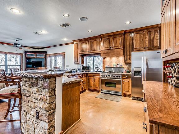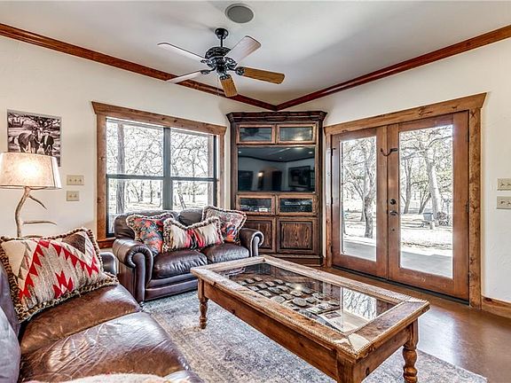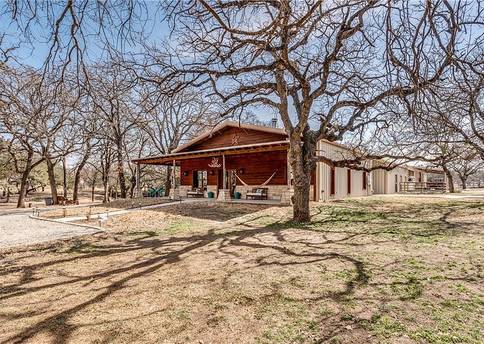 Gorgeous horse facility on 42+- acres! Great 2 bedroom 2.1 bath home with an open concept & wood burning fireplace, ideal for any horseman. Attached to the home is a 6 stall insulated barn with a tack room & wash bay and additional living quarters with 1 bedroom, 1 full bath, kitchen & living area. Property also features a 60x40 insulated shop with 72 ft overhang & living quarters. 200x100 covered arena w flag system, water system & traps. 300x160 outdoor arena featuring a Priefert roping chute, water system & it has been set up for lights. Horse walker, 5 loafing sheds with Ritchie automatic waterers, 3 ponds, and a total of 17 traps. Brock ISD. Additional land is available.