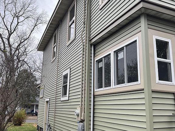 Charming historic home with recent updates that include new siding, roof, two furnaces, water heater, and lateral pipe from road, giving you peace of mind for years to come. Step into the warmth and character of this classic two-story home, which offers 1,633 square feet of living space that includes 3 bedrooms and 1 full and 1 half bathroom. The home showcases original hardwood floors and trim, preserving its timeless appeal while featuring many modern updates for today?s comfort. The kitchen comes fully equipped with appliances, and the spacious bedrooms each offer flexible bonus space?perfect for a home office, walk-in closet, or cozy retreat. The property includes a full, dry basement and two furnaces?one for each level?ensuring year-round efficiency. Situated on a quiet corner lot with organic Honey Crisp apple trees, lilac bushes, lillies, hosta's and a storage shed, the yard also features a cement slab ready for a future garage. Relax on the welcoming front porch, and enjoy the opportunity to decorate to your taste and make this home truly your own. Full of charm and po