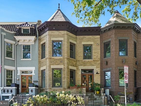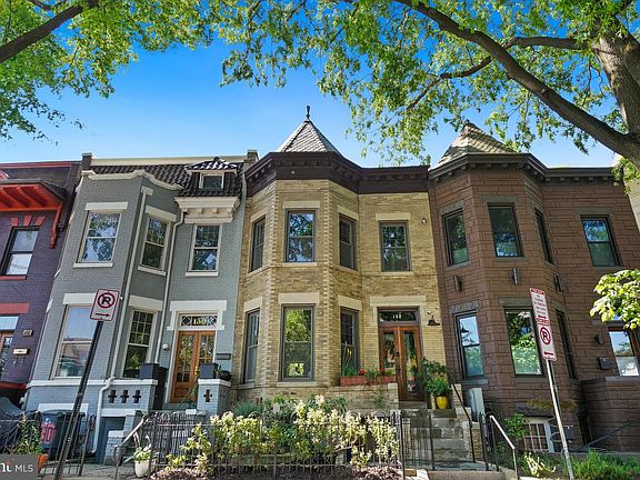Refined artistry permeates this home. Formerly the NOA Gallery and Design Studio (New, Old & Abstract) for 35 years, its original art gallery elements remain and have been meticulously restored. It is true that this house is unique in every imaginable good way. Historic bayfront with turret, restored wood French front doors...elegant vestibule which opens into an interior which is comforting, pleasing, high end. Immediately captivating and uplifting - this entirely open space features a wonderful kitchen with farm sink, quality stainless appliances, stone countertop, cooking island, white cabinets, extra shelving and exposed brick. Simply amazing dining area - lined with bookshelves and south facing windows. Inviting living room with bay window and original fireplace mantel. Powder room with hewn wood counter and trestle sink, great hardware. High ceilings, warm heart of pine floors throughout. Fabulous owner's suite w/ large walk in closet with restored wood barn door, stunning bath which was gutted to studs - gorgeous. Large second bedroom with bay window, murphy bed and wall of bookshelves. And something rare - a spa like oasis with 67" Gaia Soaking Tub for solace and luxuriating, overlooking trees. DELIGHTFUL deck off the owners bedroom - private and pretty. Greenhouse-like office off the deck. Another touch of artistry and uniqueness. Charming patio off rear. Basement for working out and storage. Gallery lighting - art lights giving a warmer light. Walls painted in Farrow and Ball flat paint with public space ceiling in high gloss - a single hue can be swept up the walls and across the ceiling to envelop your room in color and warmth - incredibly calming. Other high-end touches include Buster and Punch switches, Farrow and Ball wallpaper, Vertigo Pendant Lamp, custom built bookshelves and murphy bed, Kohler fixtures throughout. Steps to Boundary Stone, Red Hen, Showtime, Aroi Thai and multiple neighborhood coffee shops. Three blocks to Crispus Attucks Park, five blocks from the Metropolitan Branch Trail, and walking distance to shops and restaurants on 7th and 9th streets in Shaw and Union Market. Walk to Metro. And there's more: New roof - 2019; Second floor bath renovation - 2020; Main level bath renovation - 2018; New boiler - 2016; New A/C - 2019; New hot water heater - 2016; New dishwasher - 2022; New stove - 2020.