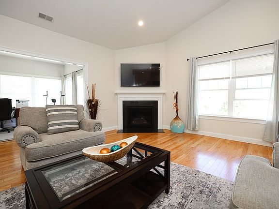 Welcome to desirable Rogerson Xing! A hidden gem tucked away in a beautiful neighborhood in Uxbridge. This First-Floor Living features the sought after Open Concept Floor plan. The kitchen is well appointed with beautiful white shaker cabinets, granite countertops, stainless steel appliances, a sizable pantry closet, and a two tiered breakfast bar. The Laundry/Mudroom off the kitchen boasts plenty of storage, and a pulldown attic access for additional storage. The dining area off the kitchen is convenient for family meals and entertaining while the gas fireplace in the living room adds character and luxury to the space. The generous living room with vaulted ceiling opens up to a sunroom with a slider to access the patio to enjoy the privacy of your backyard because this unit is located on the outer loop. The spacious master suite offers a master bathroom with a double vanity and a large walk-in closet. The spacious secondary bedroom also has its own bathroom. Don't miss out!