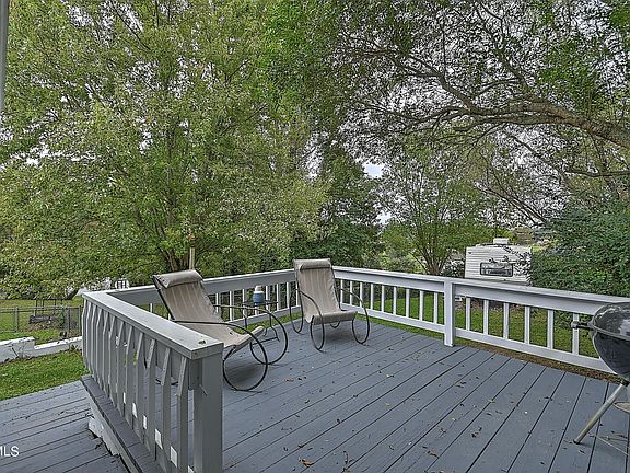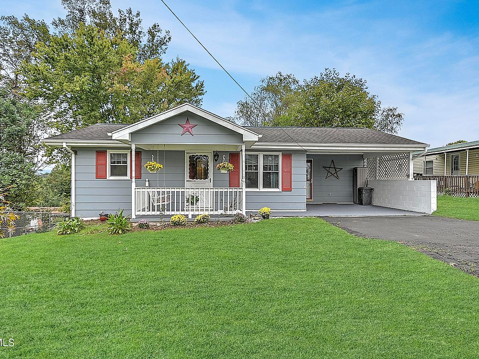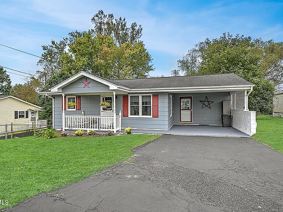 A brilliant location for easy access to Johnson City and Elizabethton. Catch a view of the mountains from the front porch. Inside you will find a move-in ready living room with what appears to be the original hardwood floors & 2 bedrooms with wainscoting. 2 baths, tile flooring. kitchen with good appliances, vinyl flooring and white cabinetry. Laundry closet. Walk out the back door right into a nicely done screen porch and from there onto a huge deck! Nice size back yard. A clean unfinished basement with easy access to CH&A, water heater and tall enough for this 6'5'' agent to walk without banging his head. As a bonus, there is a vintage camper in the back yard that can be used as sleeping quarters for guests. It has no plumbing. But it's cute!