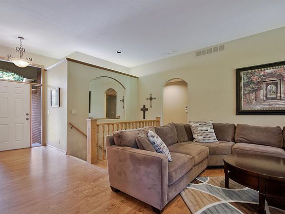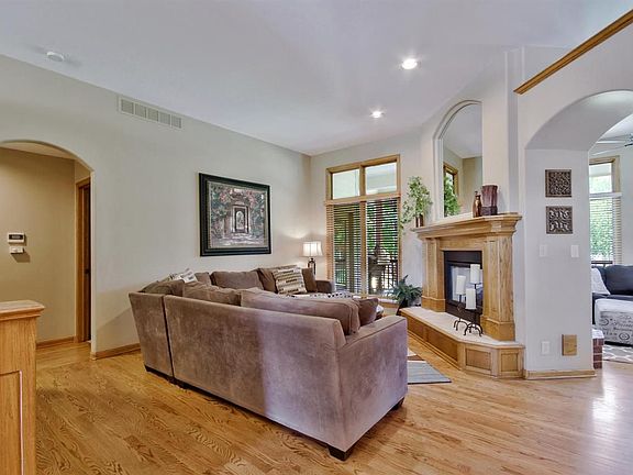 Sensational ranch situated on a sizable cul de sac lot. Located in a popular neighborhood. Nice curb appeal. Comfortable floor plan. Vaulted ceilings, open kitchen and hearth, two way fireplace, formal dining area, updated kitchen, granite counters and tiled backsplash, kitchen island, chrome appliances, wood floors and more... Coffered ceilings in master bedroom, master bath includes a separate soaker tub and shower, two sinks, walk in closet and tiled floors. Main floor laundry is off the kitchen with storage cabinets. Full finished walk out - view out basement. Family/rec room, game area, wet bar, surround sound, bedroom with walk in closet, bath and sizable storage space off of family room. 3 car garage with opener, built ins, sprinkler system, irrigation well, Iron fencing around yard, covered deck and more... Neighborhood pool, clubhouse, walking paths around lake and all within walking distance of this home. Desirable schools and short driving distance to all recreation, shopping and highways.