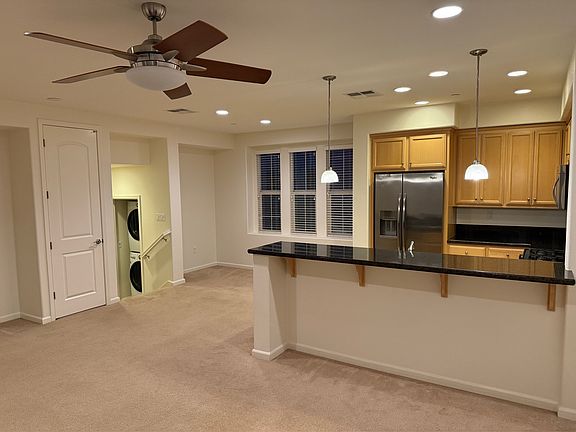 Breakfast barWall to wall carpetingStone counter topsWasher and dryerCentral air conditioning