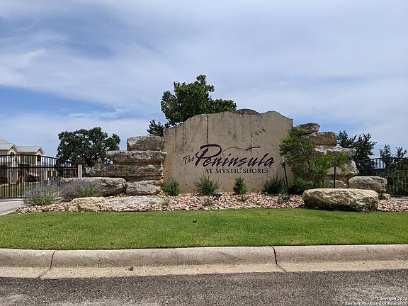 Lakefront Luxury Awaits! This is a must see in person to capture all it has to offer! Rare opportunity to own this 3.54-acre lakefront property in the prestigious gated section of Mystic Shores at Canyon Lake (The Peninsula at Mystic Shores). Experience breathtaking views of Canyon Lake and the surrounding Texas Hill Country with unobstructed vistas for miles. This property is adorned with mature oak trees and is situated on a quiet, secluded cul-de-sac. With ample acreage to spread out, there are multiple build sites perfect for your custom dream home or estate, including space for allowed separate outbuildings such as a casita/guest house, detached garage, or workshop. The property allows for up to three buildings total, including the main dwelling (more than allowed on smaller acreage lots within the community), which can be a 3,000+ square foot home with a 2-4 car garage. Water well permitted as well as underground utilities and available fiber optics ensure modern conveniences are at your disposal. Build now or later and take advantage of this opportunity to live in one of the most highly sought-after communities in the Hill Country. The Peninsula at Mystic Shores offers a host of amenities, including a homeowner's waterfront park with lakefront access, community pools, an outdoor pavilion for parties, tennis courts, a playground, game courts, a boat ramp, RV and boat storage, walking and biking trails, a fitness center, a clubhouse, planned social events, and a 140-acre nature preserve. Don't miss this chance to build your dream home in a premier community with unparalleled amenities and natural beauty. Mystic Shores at Canyon Lake is a great centralized location to San Antonio, New Braunfels, San Marcos, and Austin. The historic towns of Gruene, Fredericksburg, Blanco, Johnson City, Boerne, and Luckenbach are minutes away.