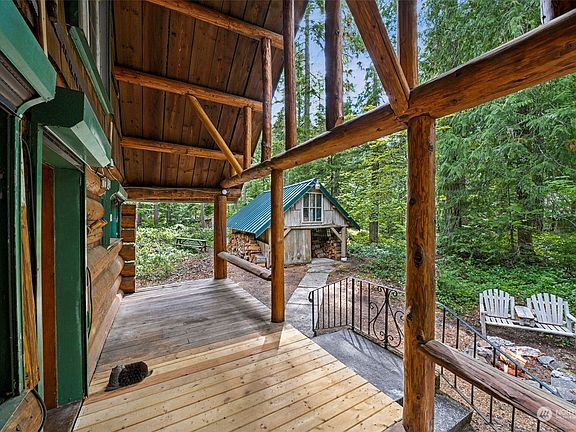 Make lifetime memories in this classic United States Forest Service recreational log cabin nestled in a majestic old growth forest setting only 15 minutes from Crystal Mountain Resort & Mt. Rainier National Park. Large cabin with 1,088 sq ft, 3 bedrooms. Great room with cozy wood fireplace, dining rm that seats 8, main flr bedroom, pulldown stairs with 2 upper bedrooms & reading nook. Large deck and firepit where you can gather on snowy winter nights or frosty autumn days. New metal roof, remodeled bathroom & kitchen on main floor. Auto generator, ski wax room in woodshed, and fantastic setting next to "sled hill". Septic and water. Cash only; cabin on leased Forest Service property.