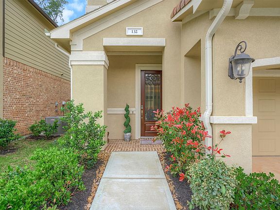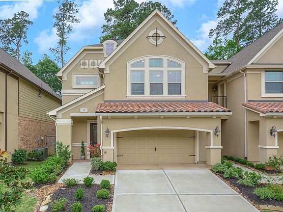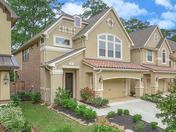 Stunning, Village Builders townhome on premium greenbelt lot. Stucco exterior with iron accents, graceful lines, porte-cochere finished with clay tile roof are upscale features and lend to overall welcoming presence. Gorgeous inside. Many upgrades. Wood floors down, luxurious patterned carpeting up. Striking wrought iron lines staircase and upstairs walkways. Eye-catching chandelier in entry. Adjoining family, kitchen, dining. Kitchen in on-trend colors/finishes with oversized island, commercial-looking SS appliances, light granite, white mosaic linear tile backsplash, light warm gray cabinets, wine bar w/glass cabinets. Family room has wall of windows, elegant fireplace in white stone, spacious for oversized furnishings. Dining area is lovely with wall of windows. Upstairs game room with split bedrooms, full bath, laundry room. Master has his & her vanities, soaking tub, walk-in glass shower. Lanai w/ceiling fan, spacious backyard, no rear neighbors.