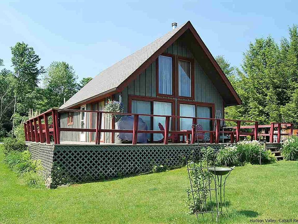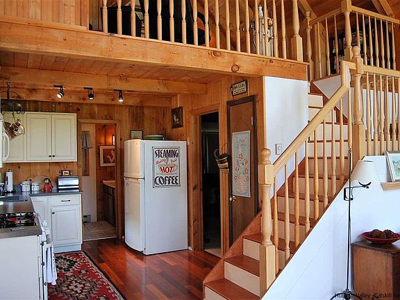 You can just move right in to this newly renovated and light-filled home, sited in beautiful High Falls. Perfect for an easy entertaining and living with an open floor plan. One of the few homes overlooking Stone Dock golf course, with real stairs leading to the upstairs bedroom! The living and dining room are crowned with two sets of sliding glass doors overlooking the beautifully manicured Stone Dock Golf Course and is in walking distance Rondout Creek as well as The High Falls Cafe. Sparkling wood floors highlight the main living spaces and along with the wood ceilings and beams bring warmth to the senses. Ascend to the 2nd story, now used as a bedroom, and have a bird's eye view of the stunning landscape. This little gem is neat as a pin and the kitchen is compact, yet efficient along with the bathroom and bedroom with new carpeting and bathroom on the first floor. Expansive decking surrounds the house on two sides and allows for open vistas to the golf course and beyond. All this is just a few minutes away from the vibrant hamlets of High Falls and Stone Ridge, as well as the famed Mohonk Mountain House, Minnewska State Park, New Paltz and Kingston.