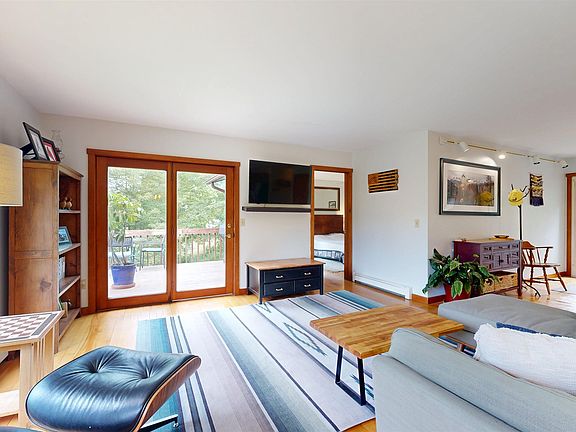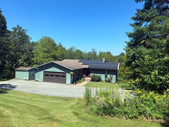 Gorgeous 4-bedroom modern hillside contemporary ranch set on nearly 4 acres in one of Richmond’s most sought-after country neighborhoods. This 4-bedroom, 3-bath home boasts a beautiful walkout basement, an oversized garage, and seasonal mountain views. The large open kitchen with custom island flows into an expansive great room with floor-to-ceiling windows and multiple porches, including a screened porch perfect for morning coffee and mountain breezes. The first-floor primary suite features a spa-like ensuite bath. The walkout lower level offers an additional living area with a cozy woodstove and direct access to a private patio—the ideal place to relax. Thoughtful updates include owned solar panels, Tesla battery, new septic, and a heat pump for efficiency and peace of mind. Enjoy a looped neighborhood street, perfect for peaceful strolls or jogs, with a friendly yet private setting. Outdoor enthusiasts will love the location: just minutes to the village, plus Nordic, alpine, and backcountry skiing, hiking, mountain and gravel biking, swimming, river floating, and fishing. A perfect blend of comfort, efficiency, and Vermont lifestyle. Only 25 minutes to Burlington/UVMMC and close to Vermont's amazing ski resorts!