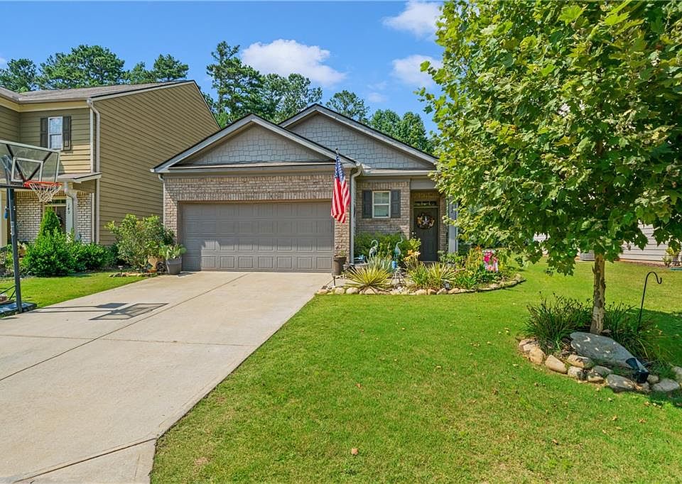 If you've been searching for a beautiful ranch home, then you have found it! Spacious open floor plan with split bedroom locations, gleaming floors, and covered patio great for entertaining or just relaxing. As you enter the doorway, you realize the quality. An open dining space, the Kitchen features granite countertops, matching backsplash, stainless appliances, rich wood cabinetry, pen light fixtures and a view to the family room. Sizeable family room with double glass doors leading out to a tranquil covered patio. Off the family room is the master bedroom and a large window that gives a peaceful view of the backyard. There is a walk-in closet and a master bathroom with double vanity and oversized shower. On the other side of the home, is a laundry room, and 2-additional bedrooms nestled between a full bath with a tub/shower combo. This home is located conveniently to the North GA Premium Outlets, Kroger Shopping Center, and GA-400. Neighborhood offers a large playground, pool and sidewalks.